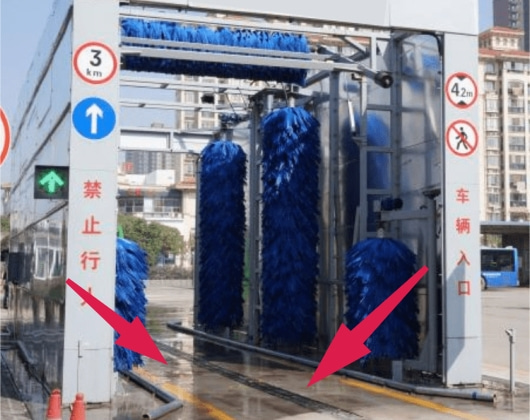 通过式大巴洗车机主要是利用超软耐磨毛刷,和高压水来清洗车辆,通过电脑感应系统进行自动化检测车辆,分析车辆的款式和外形,并采用毛刷和高压水的最佳适合角度,对车辆不同的外观进行快速的清洗作业,避免对车辆外观造成的损害,提高了车辆的清洗速度。
